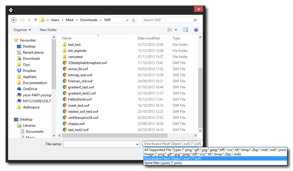 Currently GameMaker Studio 2 can only import vector images from SWF format files, and the way of importing them into the program is almost identical to that for adding a normal bitmap image. To add a vector sprite, create a new sprite, which will bring up the standard Load Sprite dialogue, but make sure that you have selected *.swf from the file filter at the bottom.