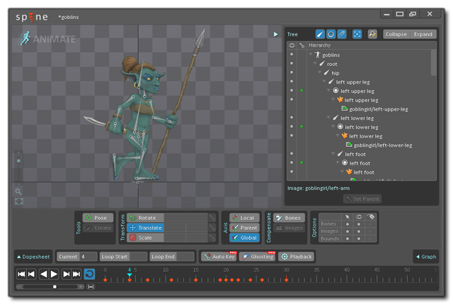 Unlike bitmap sprites, the imported skeletal animation sprite cannot be modified in the editor in any way, but there are a number of functions available within the GameMaker Language (GML) which can be used to change skins, set properties, and control other aspects of the animation.